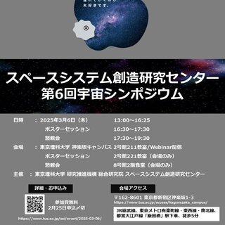 | 参加費・資格 | 【対象】 宇宙研究に関心のある人々 【募集人数】 会場参加は先着順 【締切】 2025年2月25日(火) 【参加費】 無料 【申込方法】 Webサイトから申し込み |