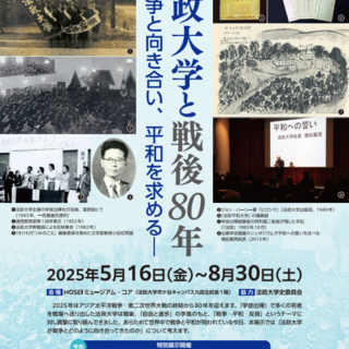法政大学HOSEIミュージアムでは、戦後80年という節目の年にあたり、「平和の探求—法政大学と戦後80年 戦争と向き合い、平和を求める—」をテーマとした春学期展示を開催します。