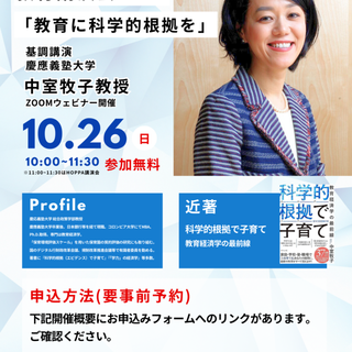 【オンライン開催】HOPPA教育講演会2025「教育に科学的根拠を」講師:慶應義塾大学 中室牧子教授