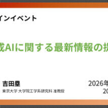 東京大学 大学院工学系研究科の吉田塁 氏によるオンラインイベントが、2026年3月27日(金)20:00〜21:00に実施予定と案内されています。