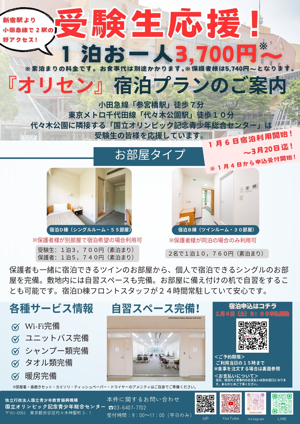受験生応援宿泊プラン「オリセン」提供中──学習に集中できる環境を受験生に