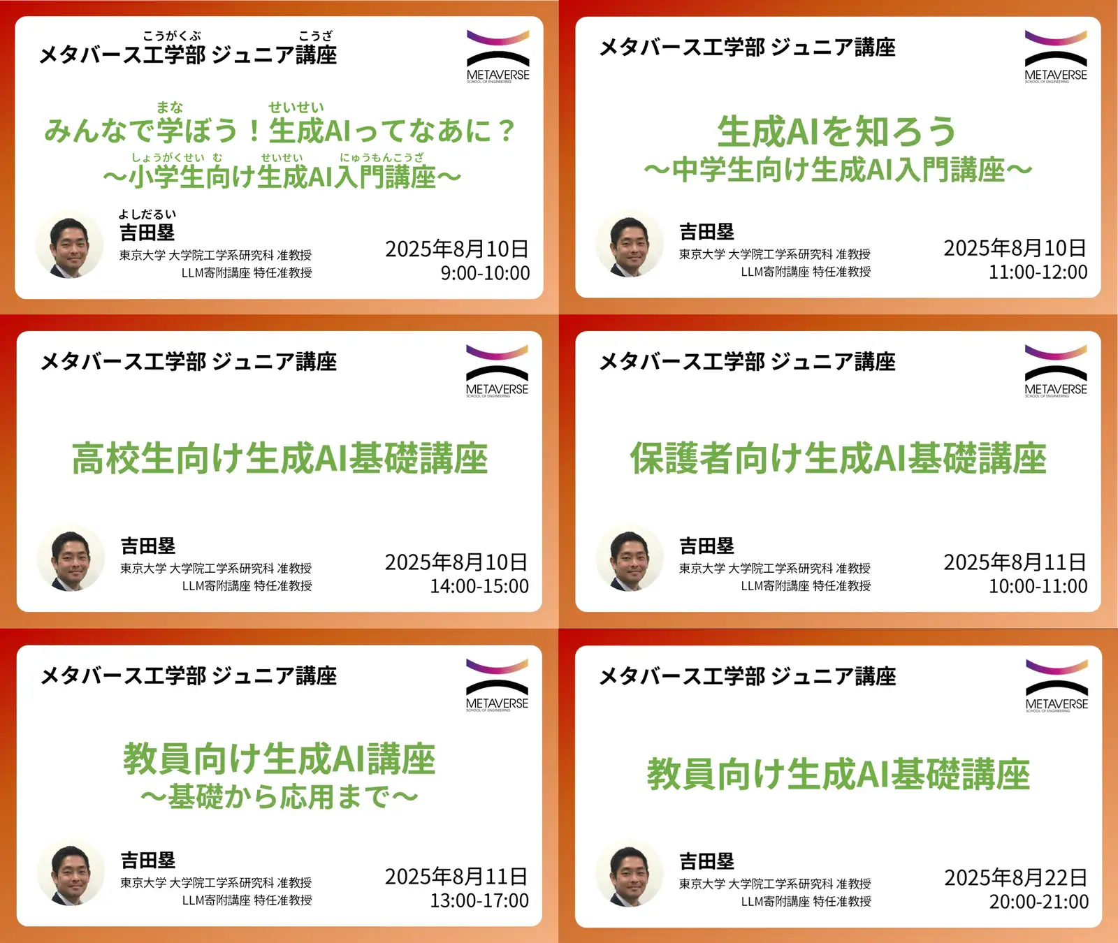 教育DX 生成AI活用 2025.08.28 【東京大学メタバース工学部】5講座合計再生回数1万回突破!生成AIについて学べる無料オンライン講座のアーカイブ動画を公開 アーカイブ公開 オンライン講座 メタバース工学部 教員向け教材 生成AI