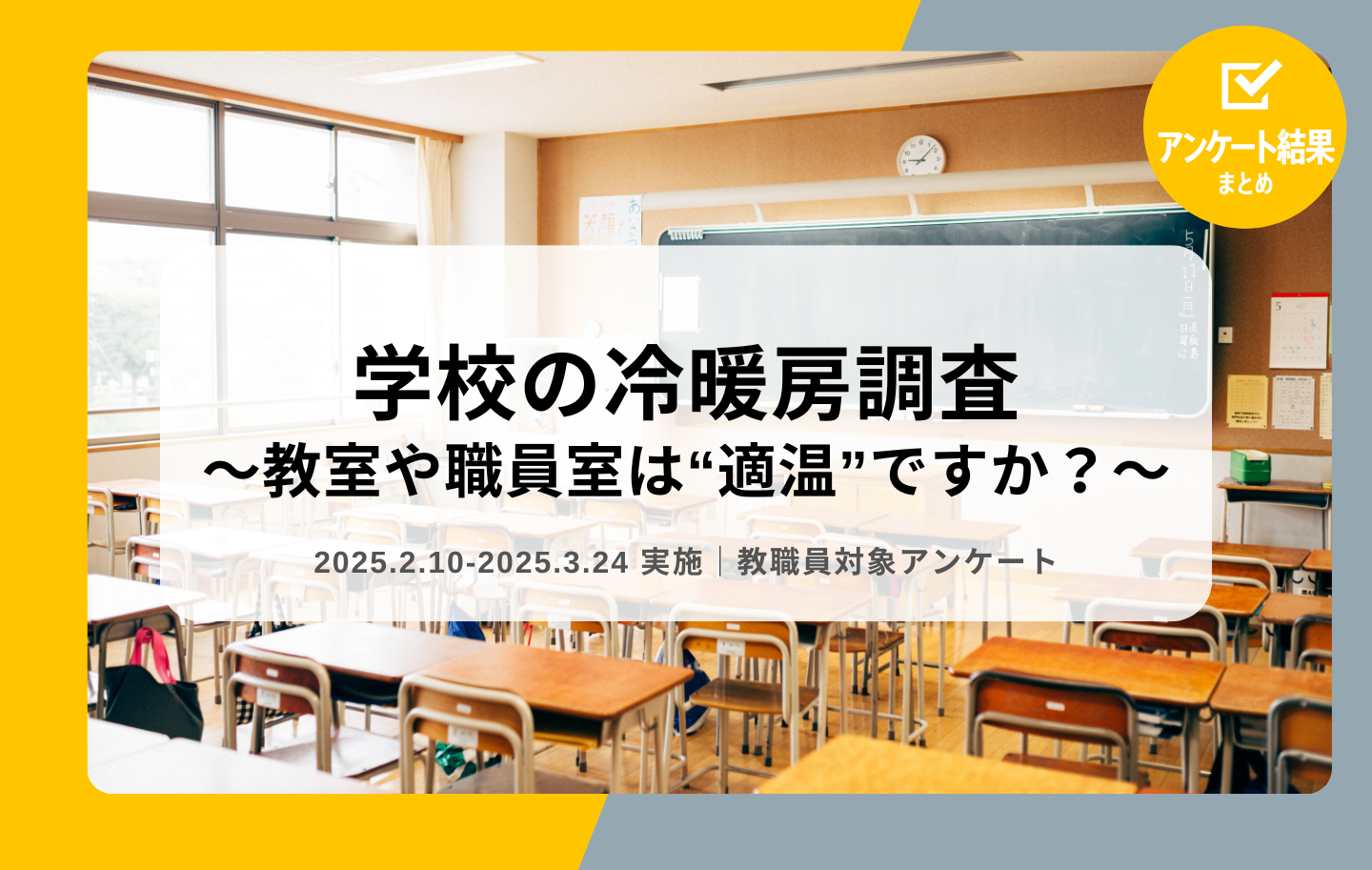 アンケート調査 学習環境整備 2025.06.06 教職員アンケート結果を公開!学校の冷暖房調査 〜教室や職員室は"適温"ですか?〜(2025年ver.) 冷暖房設備 学校環境衛生基準 教室温度 教職員アンケート 職員室温度