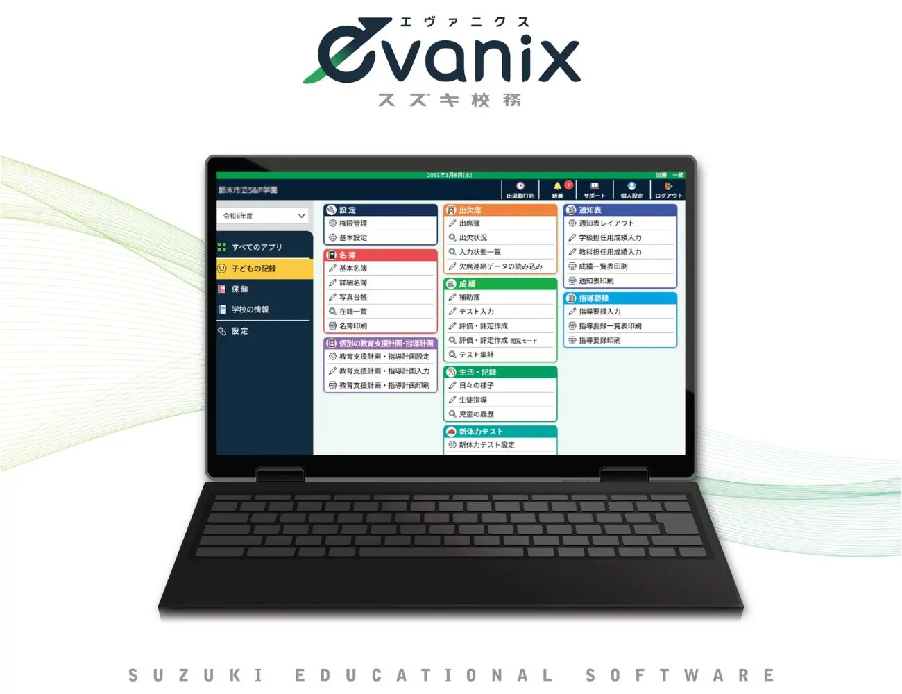 学校業務効率化 校務DX 2025.03.17 スズキ教育ソフト、校務支援システム「スズキ校務シリーズ」をWebアプリ化した「evanix」を4月にリリース evanix 学校DX 教育ICT 校務支援システム