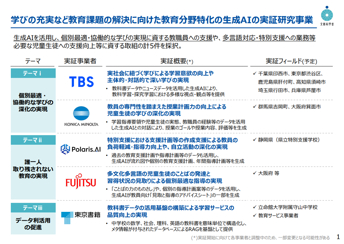 デジタル併願制 児童ポルノ対応 命の安全教育 性暴力非難 情報モラル教育 教育政策 教育行政 文部科学省 高校入試 高校教育改革 高校教育改革基金 AI活用ガイド Gemini Gemini Gem ミカサ商事 授業準備支援 教員の働き方改革 教育DX 校務効率化 生成AI活用 ICTリテラシー Simeji アプリ活用 キーボードアプリ バイドゥ 企業連携 共創プロジェクト 学校連携 情報モラル 教育ICT AI型ドリル ラインズ ラインズeライブラリアドバンス 個別最適化学習 全校導入 学習履歴可視化 新居浜市 PLaMo Preferred Networks 国産AI 大学DX 教職員業務改善 滋賀大学 生成AI 研究支援 インクプロジェクト キャリア教育 中富良野町 地域連携教育 探究学習 文具開発 涼青の夏 LEBER リーバー 保護者連携 健康観察システム 学校ICT 校務DX 校務支援システム 欠席連絡 3D教材 DNP みどころキューブ for Learning デジタル教材 博物館連携 大日本印刷株式会社 文化資源活用 美術館連携 NEC セキュリティリスクアセスメント 実践的講義 情報セキュリティ教育 産学連携 鹿児島工業高等専門学校 GIGAスクール構想 I-O DATA ICT環境整備 USB Type-C アイ・オー・データ ディスプレイ導入事例 授業支援機器 松陽中学校 プログラム導入 教材導入 非認知能力 7つの習慣J® FCE ICT教育 mikan for School アプリ教材 学習支援 株式会社mikan 英語学習 茨城県立鹿島高等学校 AI英会話 ICT教材 スタディポケット 教員支援 英語教育 Gakken 大学入試 学研ホールディングス 推薦入試 映像教材 添削教材 総合型選抜 進路指導 面接対策 高校教材 Beta Investors+ ベータインテグラル 体験型学習 灘高等学校 金融教育 金融経済プログラム 学校給食無償化 高校授業料無償化 キーエンス財団 大学支援 奨学金制度 給付型奨学金 高等教育 すららネット ネットオフ リユース端末 教育機器 COMPASS Skater キュビナ プログラム提供 教材提供 理科教育 SDGs ブリタニカ・ジャパン プラスチックごみ問題 動画教材 学習教材 教師向け資料 環境教育 環境部資源循環推進課 神奈川県 evanix NTTドコモビジネス クラウドシステム スズキ教育ソフト 校務支援 鹿児島県 Webテスト イー・ラーニング研究所 下妻第一高等学校附属中 教育評価 生徒理解 非認知スキル 非認知能力検定 Classi tetoru 三戸町 保護者連絡 教職員負担軽減 集金機能 ECサイト TsunaBi スマートスクール プラス株式会社 個人教材 集金業務 AI Bridge Hiroshima AI教育 CLACK マイクロン財団 公立中学校 公立小学校 授業時数 教育統計 教育課程調査 標準授業時数 CBT マナビリア 全国学力・学習状況調査 明治図書出版 自動採点 UCCジャパン オクリンクプラス ベネッセコーポレーション ミライシード SHR一言スピーチ工房 みんがく スクールAI 大学学部マッチング 授業プラン相談室 自己発見サポート クラスレクメーカー 中学数学公式学び相談室 今日の英語日記 教育AI 歴史ドラマ生成 京都先端科学大学 佛教大学 小学校教員 教員免許 教員養成 連携協定 LINEみらい財団 SNSリテラシー SNS暴力 いじめ 学校安全 指導用ガイド 生徒指導 ジャストシステム ジャストスマイル デジタルテスト 学習クラウド 情報活用能力 日本語指導教材 コニカミノルタジャパン 個別最適化 授業支援 教育課題解決 ウェスタナ デジタルリテラシー リスク管理 教員研修 教職員AI研修セミナー AI活用 Google NotebookLM 教員向け書籍 教員負担軽減 三菱総研DCS 出張授業 生成AI使い方講座 不正行為防止 入試運営 AI教育支援 NOLTYスコラ 副担任mirAI 志望理由書作成サポート 志望理由書 安全教育 実践教材 情報伝達 教材開発 災害対応 防災教育 防災訓練 ICT活用 SKYMENU Mobile スマートフォン活用 働き方改革 学校DX 情報共有 AI教材 eポータル アダプティブラーニング オフライン学習 学習データ データ活用 偏差値 国語力 学力向上 学習習慣 思考力 教育効果検証 読書教育 進路指導支援 面接練習 学習プロセス可視化 学習分析 授業改善 評価支援ツール 共通テスト 受験指導 試験ルール GIGAスクール 国際会議 小学校教育 授業実践 教員研究 校内研修 外部人材活用 起業家教育 部活動改革 免許制度 大学連携 教員不足対策 受験支援 学生安全 痴漢対策 社会課題 リテラシー教育 小学校 AI学習支援 Monoxer 記憶学習 キャンペーン情報 パイロット校募集 副教科支援 ガクシー 奨学金情報 学生支援 教育格差 進学支援 デザイン教育 メタバース教育 仮想空間 学校企業連携 次世代学習 学習支援アプリ 思考力育成 i-FILTER@Cloud ISMAP Webフィルタリング 情報セキュリティ 教育現場の安全 有害情報対策 端末管理 Web利用可視化 ダッシュボード デジタル教科書 端末利活用 入試制度 公立高校入試 地域差 定員内不合格 教員向け情報 文部科学省調査 高校進学 AIアシスト eラーニング learningBOX 多言語翻訳 教材制作支援 教育効率化 自動字幕生成 AIリテラシー ブラウザAI要約 学習実態調査 学習評価 小中学生 教員指導 教育現場 AIドリル カルテ データ活用教育 ドリルパーク 子どもの主体的学習 学習の可視化 指導支援 V-code プログラミング教育 マインクラフト 地域学習 情報×探究