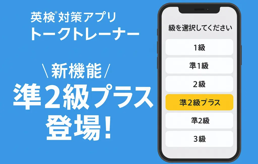 生成AI活用 英語教育 2025.09.09 トークトレーナー、英検過去問が解き放題アプリ「トークトレーナー」に「準2級プラス」登場 4技能学習 AI添削 トークトレーナー 教材負担軽減 準2級プラス 英検対策