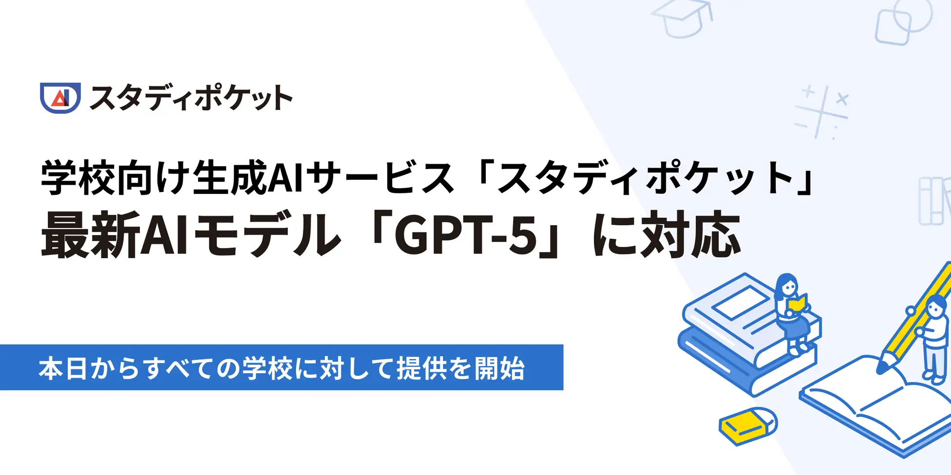 授業支援ツール 生成AI活用 2025.08.14 学校向け生成AIサービス「スタディポケット」が、OpenAIの最新AIモデル「GPT-5」シリーズに対応 GPT-5 OpenAI スタディポケット 探究チャット 教育DX 校務支援 生成AI