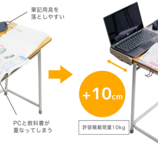この製品は学校の机の面積を拡張し、端末の安定性を向上させることで、破損を防止。既に17万台が導入され、実際の授業現場での効果を確認できるレンタルサービスを提供している。