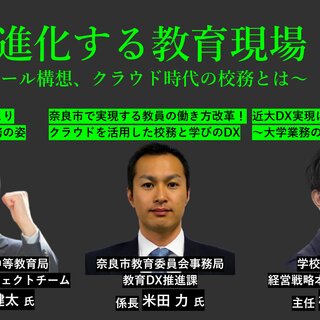 また、近畿大学の横井隼人氏は、大学における業務効率化や学生サービス向上に向けた学修環境の変革について話します。