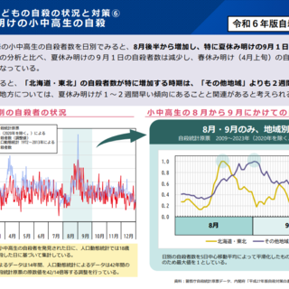 2024年の小中高生の自殺者数は529人と過去最多で、とくに夏休み明け(8月後半から9月初旬)に増加しやすい傾向が明らかにされています。