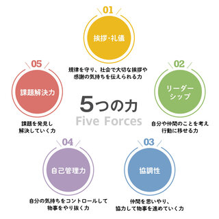 「みらぼ」は、スポーツ心理学の専門家と共同開発され、非認知能力に含まれる力は200種類以上あると言われていますが、その中でも「挨拶・礼儀」「リーダーシップ」「協調性」「自己管理力」「課題解決力」の5つの能力を非認知能力として定義し、「みらぼ」で測定を実施することで、子どもたちの非認知能力の現在地を知り、より伸ばしていくための目標や指導方針の設定に活用しています。