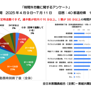 教職員97%定時退勤できず、深刻な実態明らかに...全教調べ